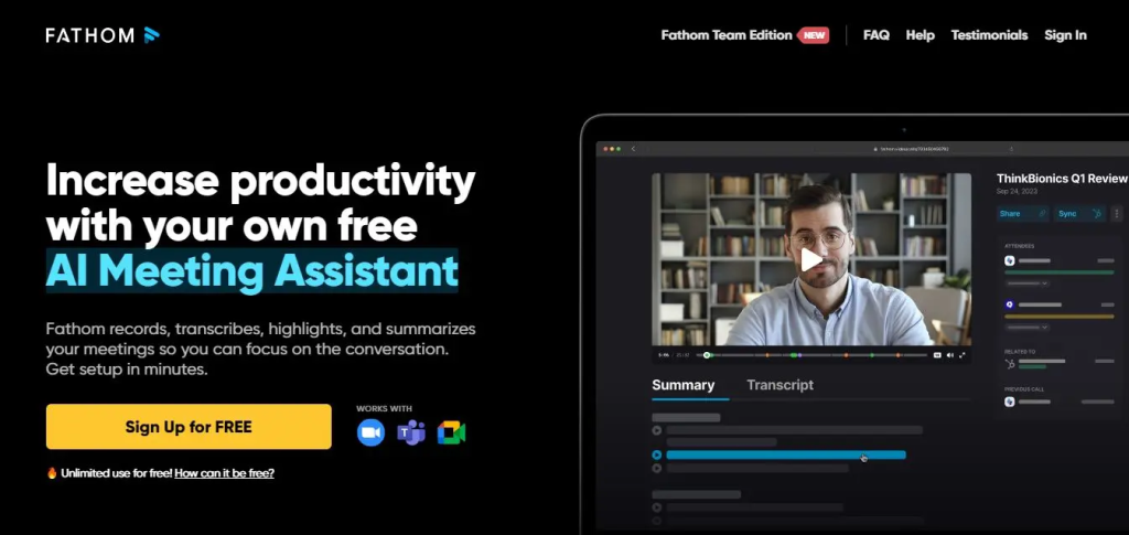 - Choose Fathom for instant post-call summaries, highlights, and CRM-ready notes with minimal setup.