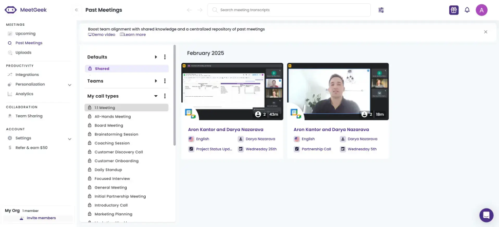 • MeetGeek – Best for automatic recording + clean summaries with a strong “set-and-forget” workflow for teams.